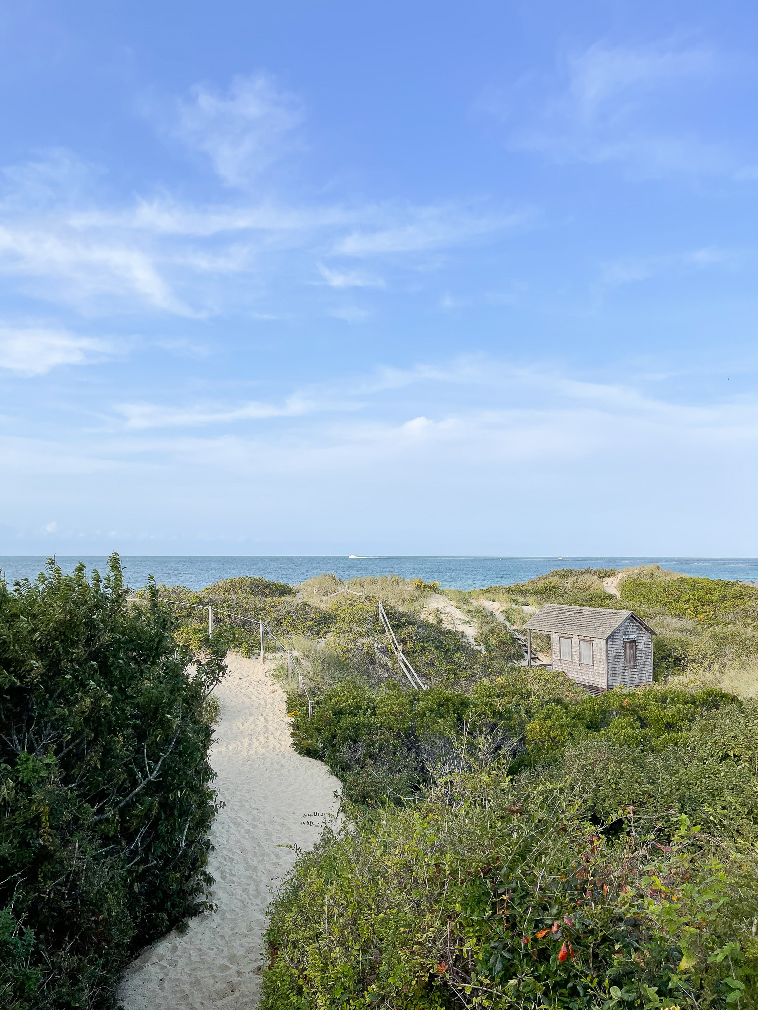 We woke up late, lingered over breakfast in the living room and planned our day. Side note, they offered fresh pastries from Born and Bread, a local bakery and it was one of the best blueberry muffins I’ve ever had. So good. We’re definitely stopping their next time for more treats. We decided to bike to Sconset via Milestone Road. What we didn’t plan on was a 20 mph head wind the entire time which made it very slow going. It was also really boring. It’s a long bike ride and not a lot to look at. But Sconset was beautiful. I loved this area of the island. We grabbed ice tea and coffee at the ‘Sconset Market, parked the bikes and walked the Sconset Bluff Walk.