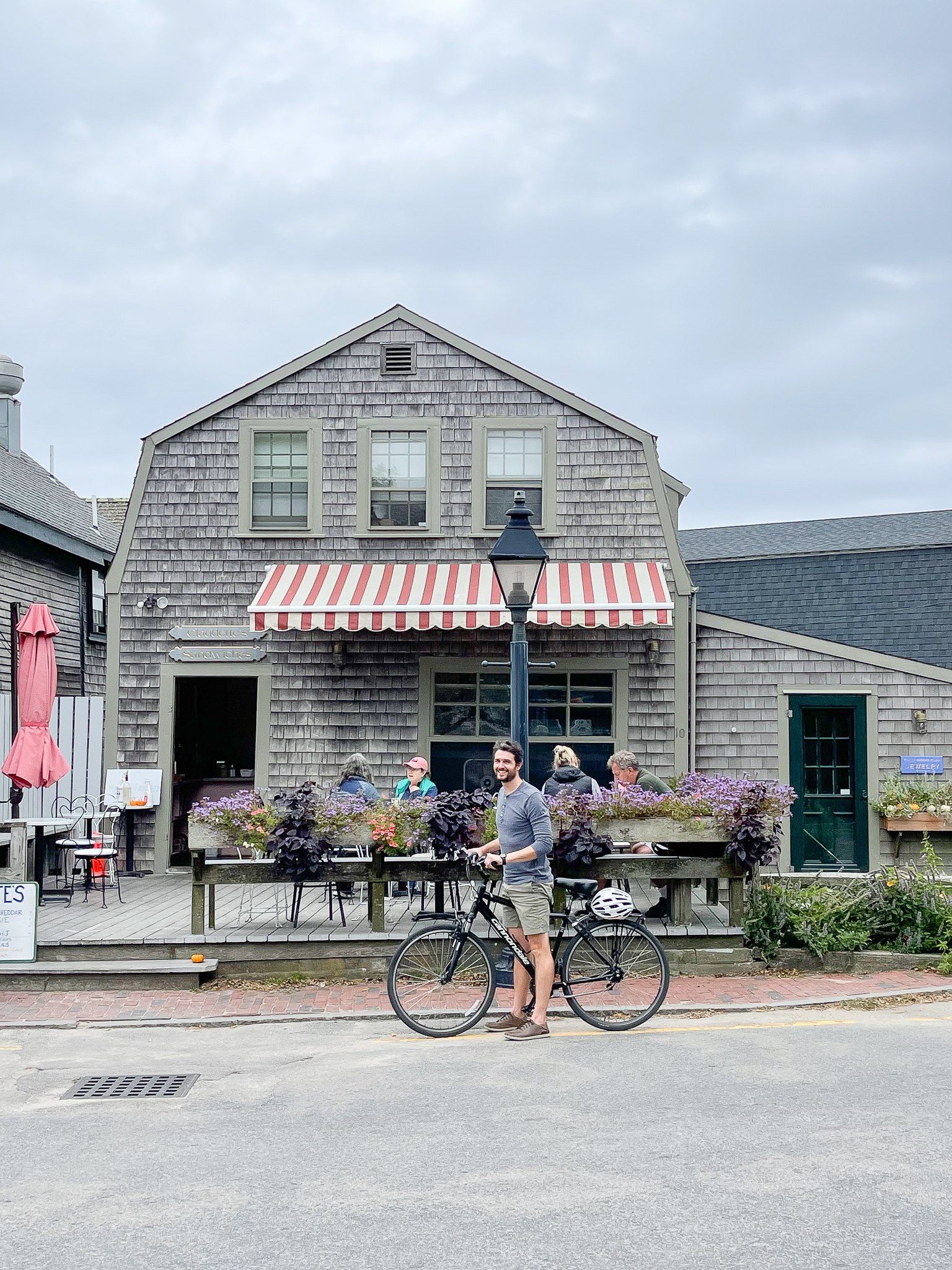 We hopped back on the bikes, peeked in as many back yards as we could as we headed back towards town to get ready for dinner. Columbus Day weekend is the last hurrah for many establishments on the island. That meant getting reservations, something we had forgotten all about prior to arriving, was a bit difficult. We asked our hotel to help and they made us reservations at Sister Ship. It was so so good. The ambiance was lovely and frankly, their White Whale cocktail was one of the best cocktails I have ever had.