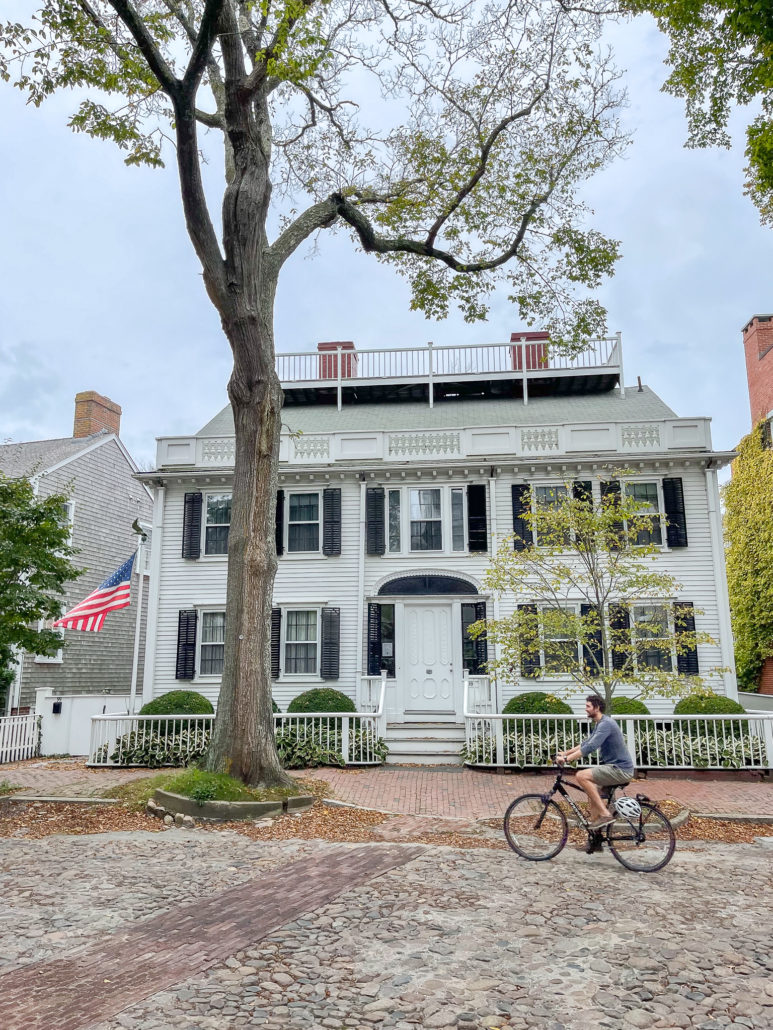 Matt wanted to rent Mopeds so badly but I still have PTSD from the last time we did that–13 years ago in Thailand. Solid nope on doing that again. I get that Nantucket has traffic laws and the helmets aren’t beer advertisements but still, nope. We biked through town, stopping at every pumpkin display we could find and then out to Madaket road. We took the bike path to Cliff Road and then circled back toward town on cliff road to Steps Beach.