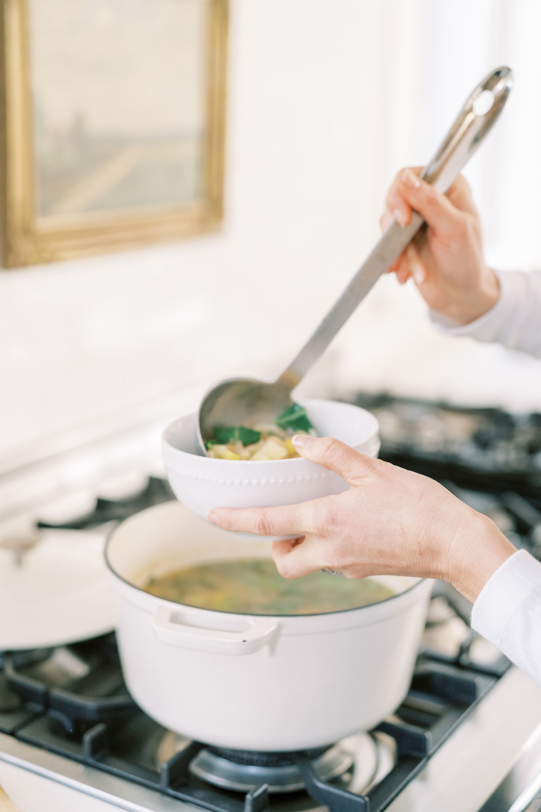 I grew up with a momma who hated beans. All beans in every form so it wasn’t until college and several nutrition classes in that I realized their nutritional profile was just too good to not be included my diet. So I taught myself to like them. And now that “like” has turned to love. Especially because we eat more vegetarian meals in general and beans provide a great dose of protein and fiber. Cannelloni beans are a favorite because they’re so silky smooth to eat. But because they are a more fragile bean, I put them into the soup after it has simmered on the stove for 15 ish minutes and we’re getting close to serving. Otherwise they dissolve.
